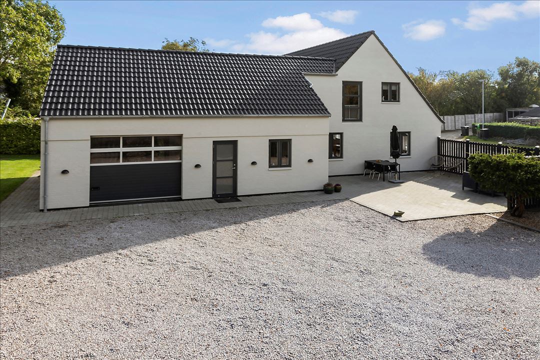 Dette skønne hjem er fuldstændig istandsat og har de senere år gennemgået en kæmpe stor forvandling. Facaden er nyere hvidpudset, malet og står rigtig flot sammen med de nyere sorte tagsten. Ligeledes er ALT, herunder bryggers, køkken, bad, gulve, lofte m.v. renoveret, så der er en rød tråd hele vejen igennem. Der er for nyligt monteret luft/vand varmepumpe, som sikrer jer nem, billig og energivenlig opvarmning. Her får I med andre ord et slikket bolche, der er fuldstændig totalrenoveret og 110% indflytningsklart. Villaen byder på 183 m2 boligareal, som fordeler sig på 114 i stueplan og 69 på 1. sal. Derudover får I en stor, isoleret garage med elektrisk port på hele 40 m2. En virkelig lækker garage, som langt de fleste drømmer om, og som kan anvendes til utallige formål. I øvrigt er der uudnyttede kvadratmeter ovenpå garagen, der er gjort klar til badeværelse m.v.