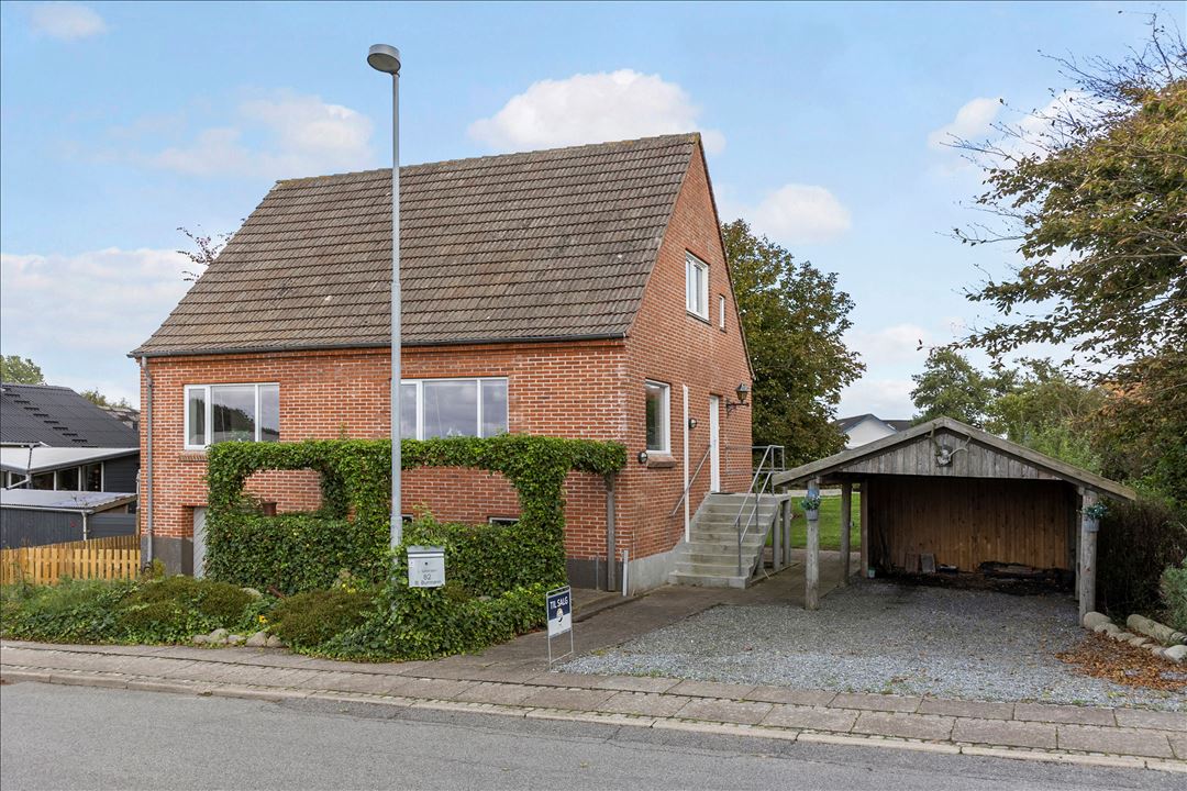 Villaen er opført 1955 i røde sten og til-/ombygget i 1984. Villaen rummer 105 bolig-m2 samt yderligere 72 m2 i kælderen. Her får I en god og overskuelig størrelse – og pga. den gode planløsning egner huset sig til både enlige, par, den lille børnefamilie og seniorer. Til huset er en carport og udhus på hhv. 26 og 8 m2.