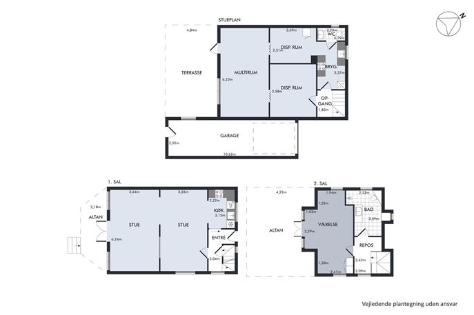 Indretning: I stueplan bliver du budt velkommen af en entré, der rummer trappeop- og nedgang og med adgang til et stue og pænt, lyst køkken. Fra køkkenet træder du ind i to rummelige stuer en suite, hvor der er plads til både spiseafdeling og opholdsstue. Fra stuen er der udgang til en sydvendt terrasse, som fungerer som en naturlig forlængelse af boligen - her har du en fantastisk udsigt ned mod haven og søen. På 1. sal finder du et lyst og indbydende soveværelse med direkte adgang til en solrig altan. Herfra har du ligeledes udsigten både ud over haven og ned mod søen i bunden af grunden, men samtidig udsigt til Limfjorden. Et flot og lyst badeværelse samt et repos fuldender etagen. Underetagen byder på ekstra plads og funktionalitet. Her findes blandt andet praktisk bryggers, pænt toilet samt super fine, disponible rum, som kan udnyttes efter behov – hvad enten det er til hobby, kontor, opbevaring, idræt, teenageafdeling eller mulighed for at indrette værelse.