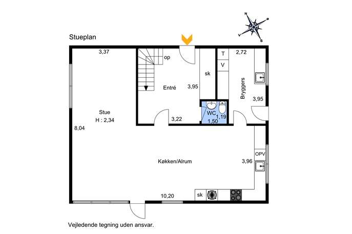 Indretning: Når bilen er parkeret i garagen, kan I bevæge jer ind i husets store og åbne entré. Her er god plads til at smide overtøjet, som nemt kan opbevares og gemmes væk i de indbyggede skabe. Allerede her mærker man den gode atmosfære i huset, for her er højt til loftet og skønne detaljer med kig til 1. salen. Herfra er der et fint og lyst, renoveret gæstetoilet og trappeopgang til 1. sal. Bevæger I jer videre ind i huset, finder man husets hjerterum – nemlig køkkenalrum i åben forbindelse med stue. Køkkenet lyst og venligt og fremtræder i pæn stand og har masser af bord- og skabsplads. Derudover god plads til spiseafdeling, hvor I får et skønt lysindfald fra de store gulv-til-loft vinduer. Med et langbord kan I nemt få plads til mange gæster her. I forlængelse heraf er vinkelstuen, hvor man nemt kan indrette sig med et hyggeligt sofahjørne. Fra køkkenalrummet er der direkte udgang til husets sydvestvendte fliseterrasse, som fortsætter hele vejen rundt om huset på den østlige side. En fantastisk skøn og stor terrasse, som er helt privat og hvor I har mulighed for at finde læ, sol og skygge alt efter vind og vejr. Slutteligt byder stueplan også på et praktisk og funktionelt bryggers med grovvask, bordplads og vaskefaciliteter – et absolut uundværligt rum til dagligdagens gøremål.