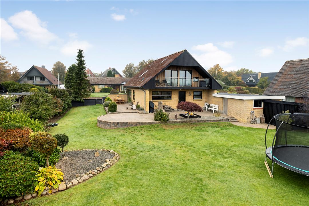 Ikke kun huset byder på mange kvadratmeter at boltre sig på – det samme gør grunden. Her er nemlig hele 1.437 m2, så der er masser af plads til sjov og leg. Der er flisebelagt indkørsel til garagen samt masser af holdepladser foran huset ud mod vejen. Derudover får I en dejlig stor have, hvor der er flere flisebelagte terrasser, mange spændende buske og træer samt en stor græsplæne, der indbyder til timers leg. Her er indrettet med masser af børnevenlige hyggekroge og I vil med garanti finde sjov for alle aldre. Som prikken over i’et er haven særdeles privat, da grunden ligger højt.