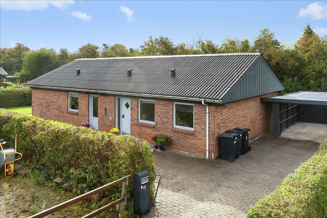 Udenfor venter en skøn og ugeneret have, der grænser op til grøn beplantning, hvilket giver en dejlig privat atmosfære. Her kan sommeren nydes på terrassen, mens børnene leger frit på græsplænen. Til ejendommen hører også carport og gode udhusmuligheder.
