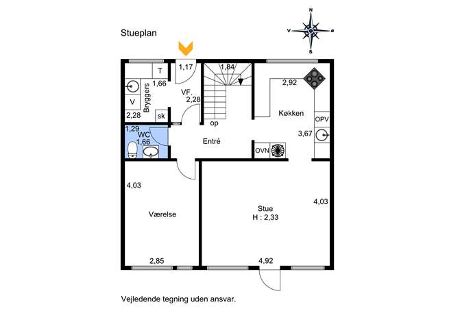 I stueplan finder du desuden et praktisk gæstetoilet, et rummeligt bryggers med vaskefaciliteter og god opbevaringsplads, samt et lækkert køkken fra 2011, som er holdt i tidløse materialer og udstyret med komfortabel gulvvarme. Køkkenet ligger i åben og naturlig forbindelse til stuen, hvor lyset strømmer ind gennem de store vinduespartier. Herfra er der udgang til den skønne, sydvendte have – en hyggelig, lukket oase, der er nem at holde og perfekt til både leg, grillhygge og afslapning i solen.