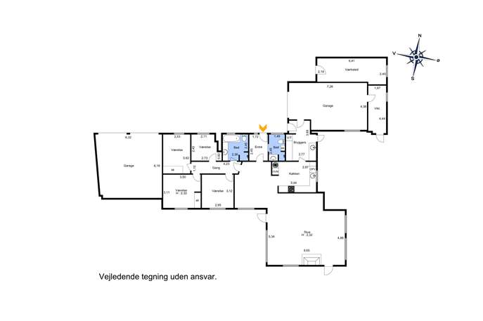 I bydes velkommen i entréen, hvorfra boligen fordeler sig overskueligt. Køkkenet ligger centralt og har et dejligt lysindfald, mens I står ved vasken med udsigt til det åbne landskab. Ved siden af køkkenet er der plads til en spiseplads til hverdagen, og opholdsrummene bindes flot sammen, så I får en naturlig sammenhæng mellem køkken, spiseafdeling og stue.