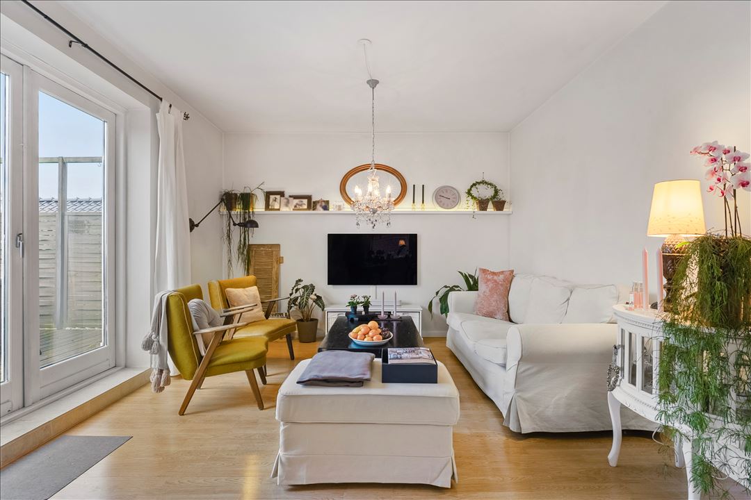 Boligen byder velkommen i entréen, hvorfra der er adgang til et praktisk gæstetoilet. Herfra åbner hjemmet sig mod køkkenet og opholdsrummene, som ligger i naturlig sammenhæng. Køkkenet fremstår lyst og funktionelt med god bordplads og fine opbevaringsløsninger, og i stuen får I et dejligt rum med plads til både spiseafdeling og sofaarrangement. De store vinduespartier giver et skønt lysindfald, og terrassedøren gør det nemt at lade inde og ude smelte sammen, når solen står på.
