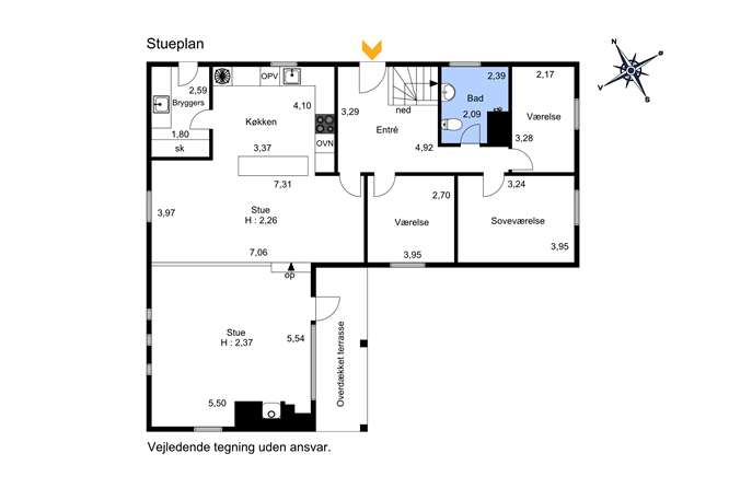 Boligen rummer i alt 140 m² i stueplan, fordelt på: