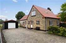 Charmerende mu­rer­mester­vil­la med sjæl, moderne indretning og hyggelig have ud til marken.