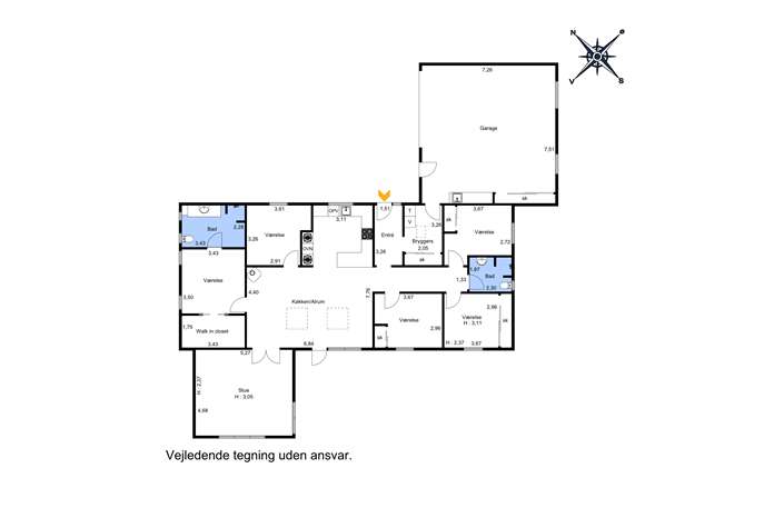 Til huset hører en stor og funktionel garage med god plads samt vask. Fra den velindrettede entré er der adgang til bryggerset, hvorfra man også kan tilgå garagen.