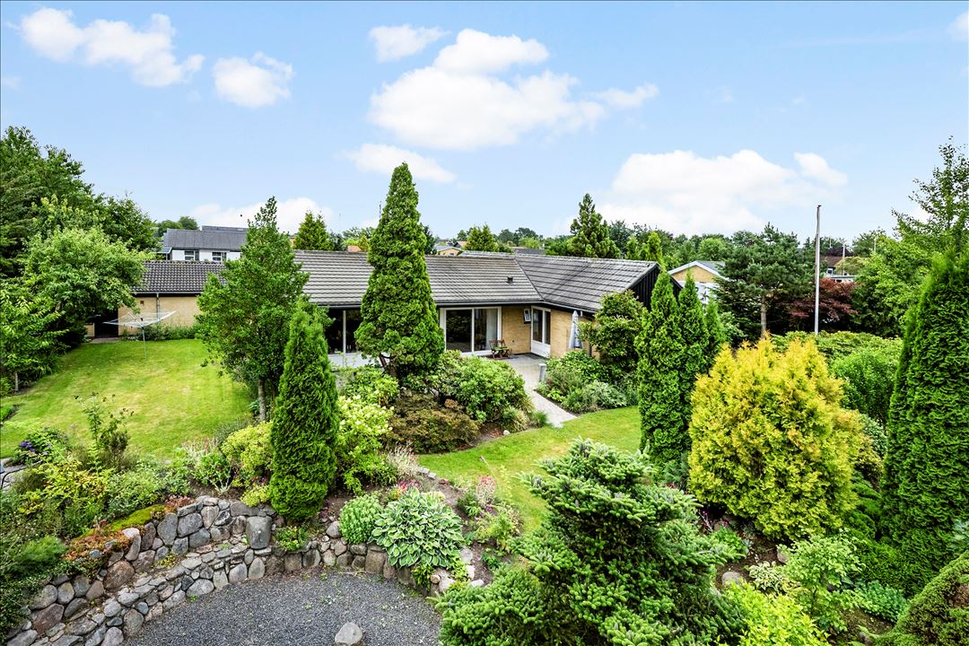 Forestil dig et hus, hvor rummene åbner sig med lys og luft – et sted, hvor familien kan være sammen, og hvor der samtidig er plads til, at alle kan trække sig tilbage. Udenfor venter en skøn have, der nærmest inviterer til sommeraftener på terrassen, leg på plænen eller stille stunder under træerne. Her er plads til både boldspil, blomsterbede og drømmen om en køkkenhave.