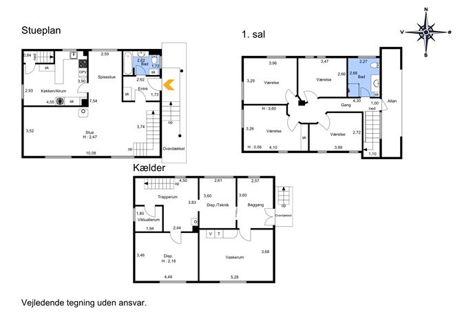 Kælderen byder på flere disponible rum samt teknik- og vaskerum. Kælderen er ikke færdiggjort, men giver rig mulighed for at indrette efter behov – eksempelvis hobbyrum, værksted eller ekstra opbevaring.