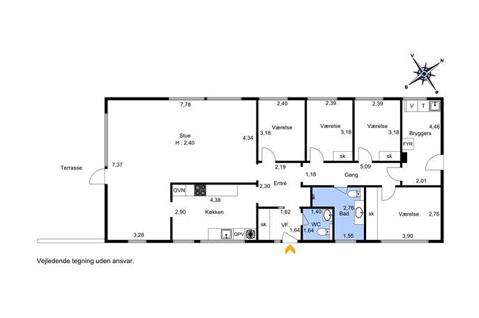 Ind­flyt­nings­klar 1-plans villa med varmepumpe