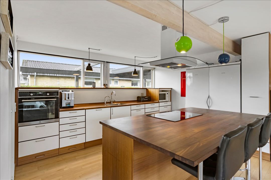 Villaen rummer hele fem værelser, som giver mange muligheder – hvad end du har brug for børneværelser, hjemmekontor eller ekstra gæsteværelse. Hertil kommer to badeværelser, så morgenerne kan glide let for hele familien. Hjertet i huset er det store køkken-alrum, som ligger i åben forbindelse med den lyse stue. Her strømmer lyset ind fra flere verdenshjørner, og du får et skønt samlingspunkt med plads til både hverdag og gæster.