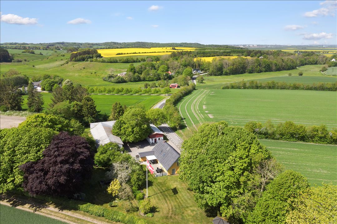 Haven er stor, frodig og indbydende – oplagt til både afslapning og leg. Her er også en havepavillion, hvor du kan forlænge havesæsonen og skabe dit eget lille grønne frirum. Ejendommen er omgivet af åbne marker og naturskøn udsigt, som skaber en fredelig og inspirerende ramme om hverdagen.