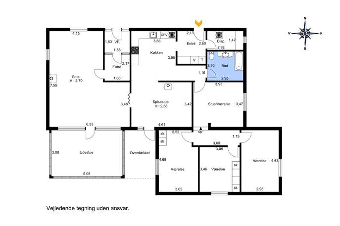 Velkommen til Rugmarken 17 – en velholdt og indflytningsklar villa med en attraktiv beliggenhed midt i hyggelige Vadum. Her får du en rummelig bolig med en praktisk planløsning, skønne opholdsrum og en dejlig sydvendt have, der indbyder til både leg og afslapning.Når du træder ind i boligen, mødes du af en rummelig entré med plads til både garderobe og vaskefaciliteter. Fra entréen er der adgang til et disponibelt rum, som egner sig perfekt til opbevaring. Videre herfra kommer du ind i køkkenet, hvor der er plads til en mindre spiseplads. Har du behov for mere plads til gæster, er køkkenet i åben forbindelse med spisestuen, hvor der er god plads til et større spisebord eller en hyggelig opholdszone. Fra spisestuen er der udgang til en overdækket terrasse – et skønt uderum, der kan bruges i både sol og regn.