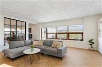 Stuen ligger i åben forbindelse med alrummet og fremstår som et lyst og indbydende opholdsrum, hvor der er rig mulighed for at indrette sig og skabe en hyggelig stemning. Herfra er der direkte adgang til den store flisebelagte terrasse, som forlænger boligens opholdsrum udendørs.