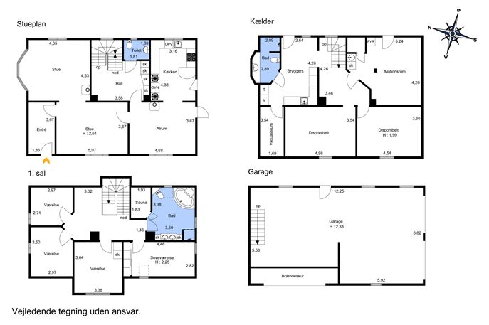 Du får i alt 200 kvm. beboelse fordelt på 2 etager samt 120 kvm. høj og tør kælder med klinkegulve og gulvvarme overalt – ideel til både praktiske formål og fritidsaktiviteter. Dertil kommer en stor dobbeltgarage på 92 kvm. med elporte, værksted og et anvendeligt loftrum med 2 meters loftshøjde.