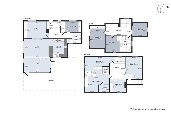 Kælderen på hele 100 m² er en markant fordel. Med en rigtig god loftshøjde er den yderst anvendelig og byder på meget mere end blot opbevaring. Her finder du bl.a.:
