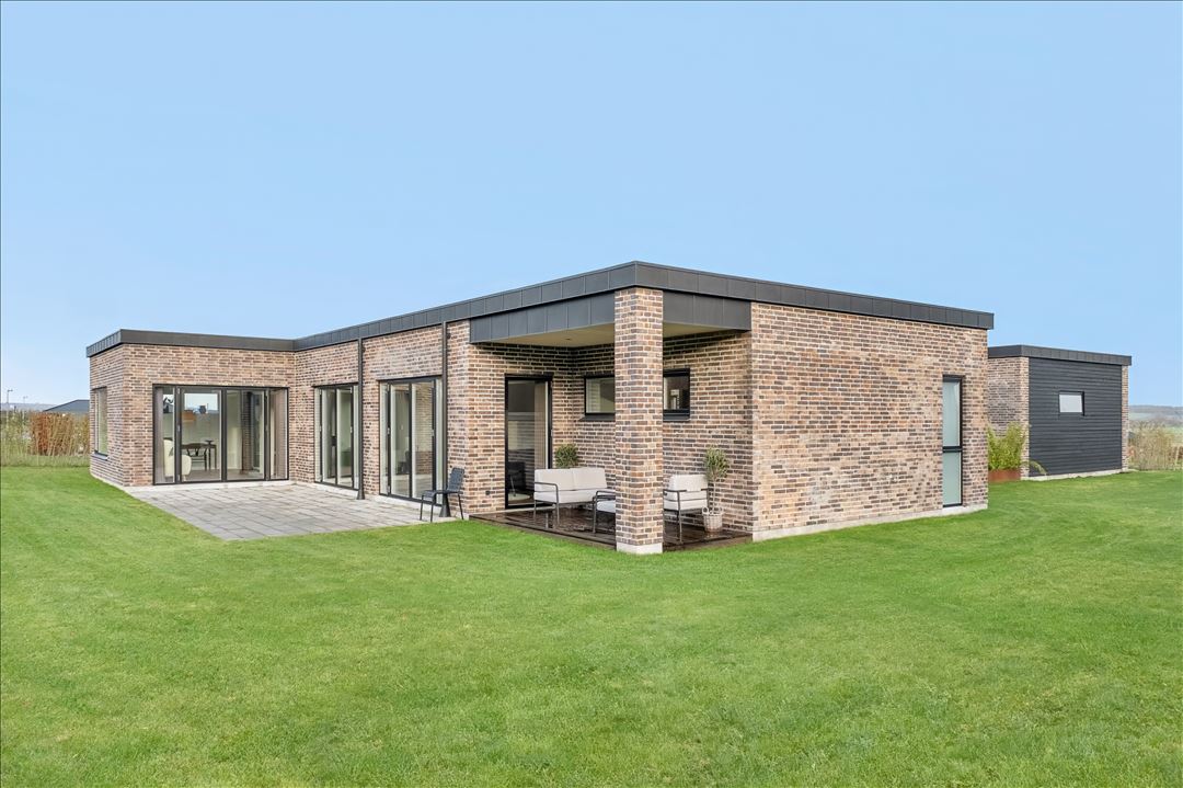 Arkitekttegnet Hybel-villa med atriumgård, 200 m² bolig og gennemført luksus i Støvring Ådale