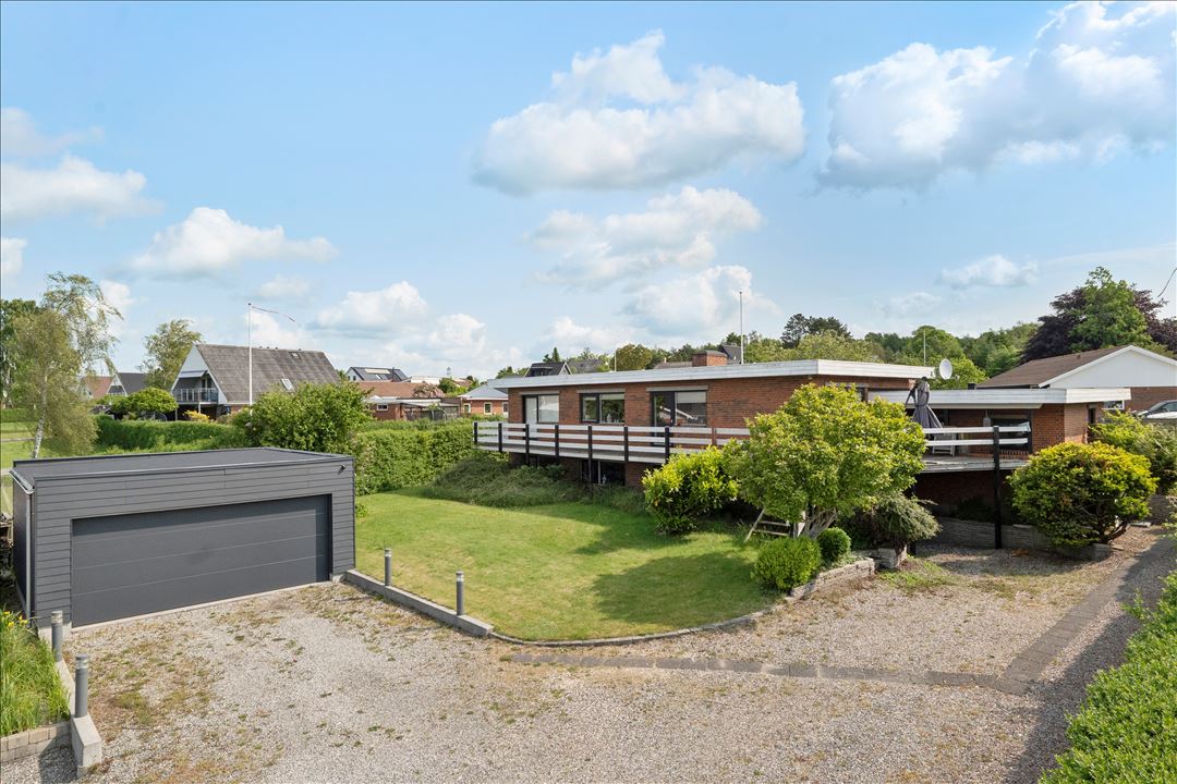 På en rolig adresse i Hadsund Syd ligger denne veldisponerede villa, hvor lys, funktionalitet og udsigt til Mariagerfjord smelter sammen. Her får du både plads til familien, gode rammer om fritiden og en hverdag, der fungerer.