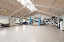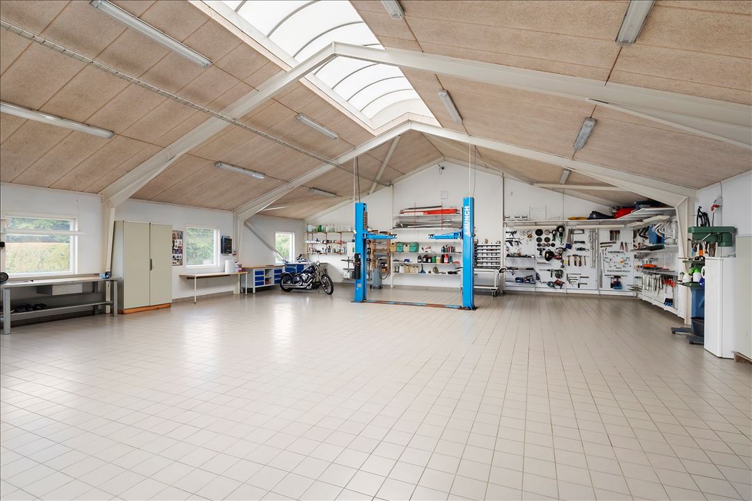Værkstedsbygningen er noget helt for sig selv. Med sine 204 m2, høje port, stor loftshøjde, solid isolering og indlagt fjernvarme er her tale om en bygning i høj kvalitet, som kan bruges til stort set alt – værksted, showroom, lager, hobbyrum eller erhverv. Bygningen er desuden udstyret med sit eget badeværelse med bruseniche samt kontor, hvilket gør den yderst anvendelig og fleksibel i dagligdagen.