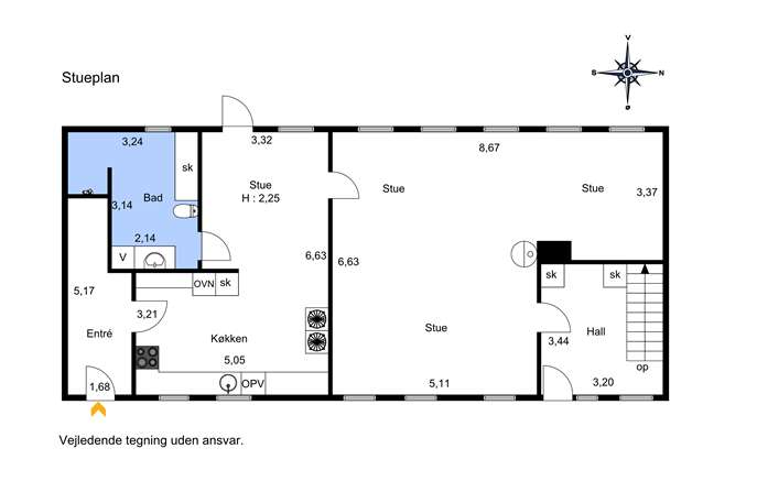 Indendørs venter en velindrettet bolig, hvor stueplan rummer et lyst og rummeligt spisekøkken, praktisk bryggers, badeværelse, dejlig stue og entré med trappe til førstesalen. På førstesalen finder I en stor opholdsstue med skøn udsigt til skov og åbne marker, et soveværelse, et ekstra værelse samt et gæstetoilet.