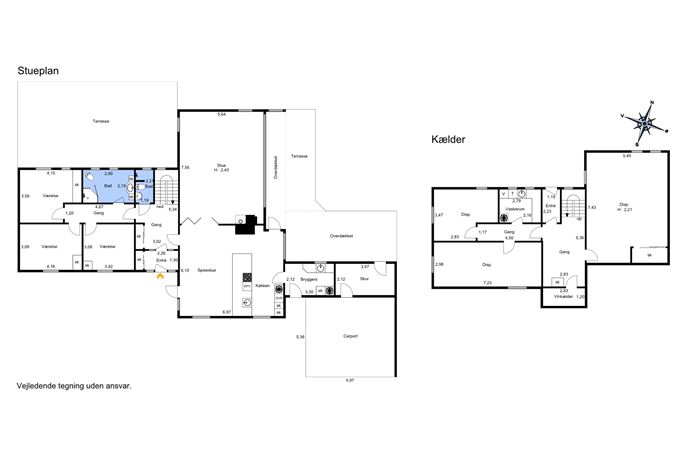 Kælderen, som er efterisoleret, tør og højloftet, er indrettet med: Vinrum, stor gildesal - anvendelig til træningsrum, legerum eller lign., flot nyt bryggers, 2 store disp.rum (boligstandard).
