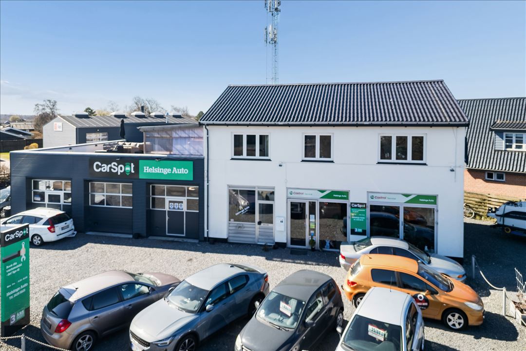Velbeliggende kombinationsejendom med både bolig og erhverv, centralt placeret i Helsinge med god synlighed og let tilgængelighed.