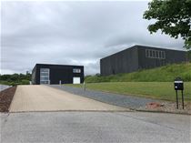 På stor grund direkte ud til motorvej sælges denne nyere ejendom. Ejendommen er opført i 2008 og har et bebygget areal på 300 m². Der er i den ene side 2 etager, hvor der er kontorer på 1. sal – så der er i alt 430 m² etageareal.