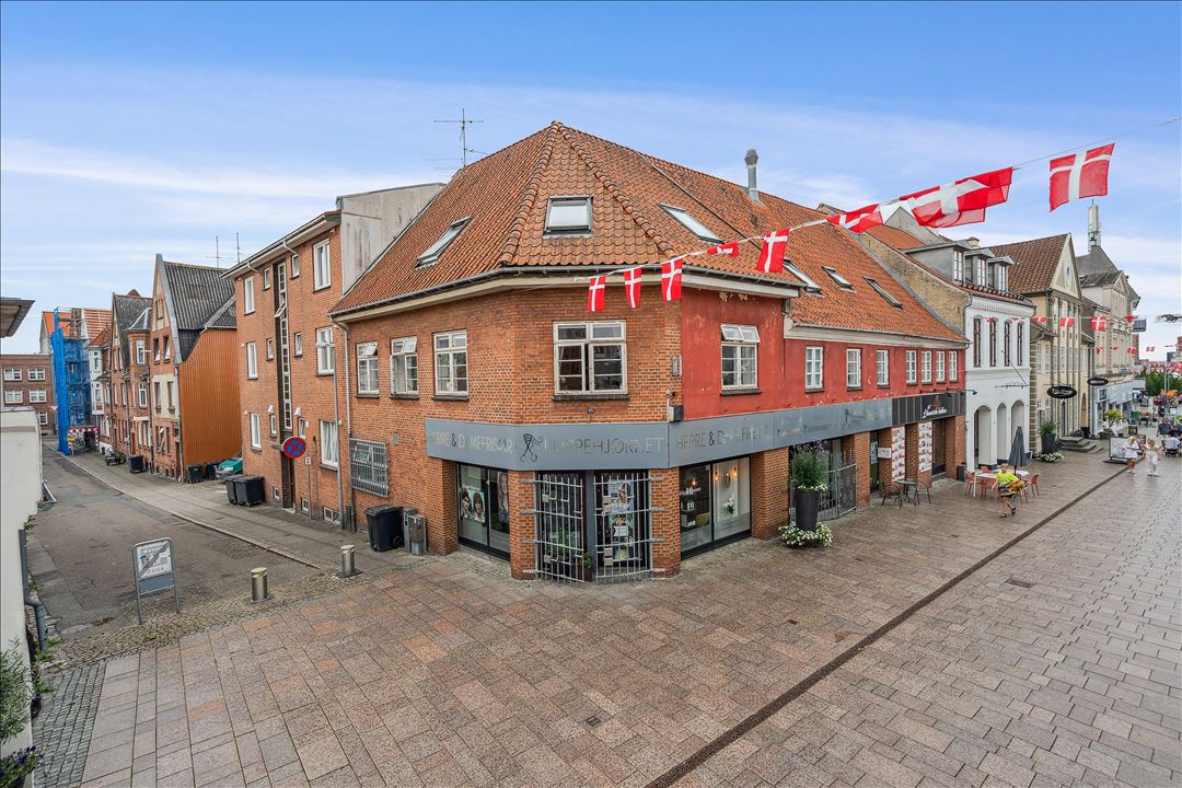 Attraktiv og markant ejendom beliggende direkte på gågaden i Sønderborg centrum – med både bolig- og erhvervslejemål samt solidt udviklingspotentiale.