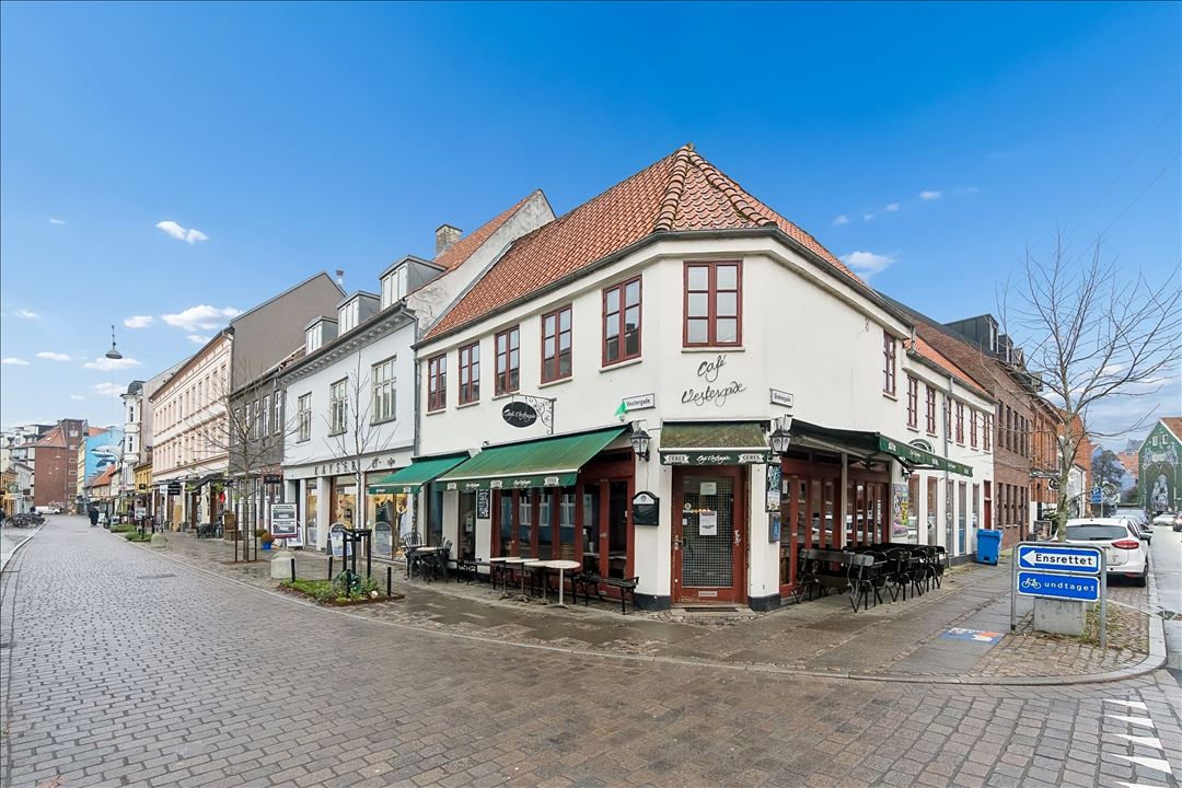 Smuk og historisk ejendom fra år 1830 på hjørnet af Vestergade og Grønnegade
