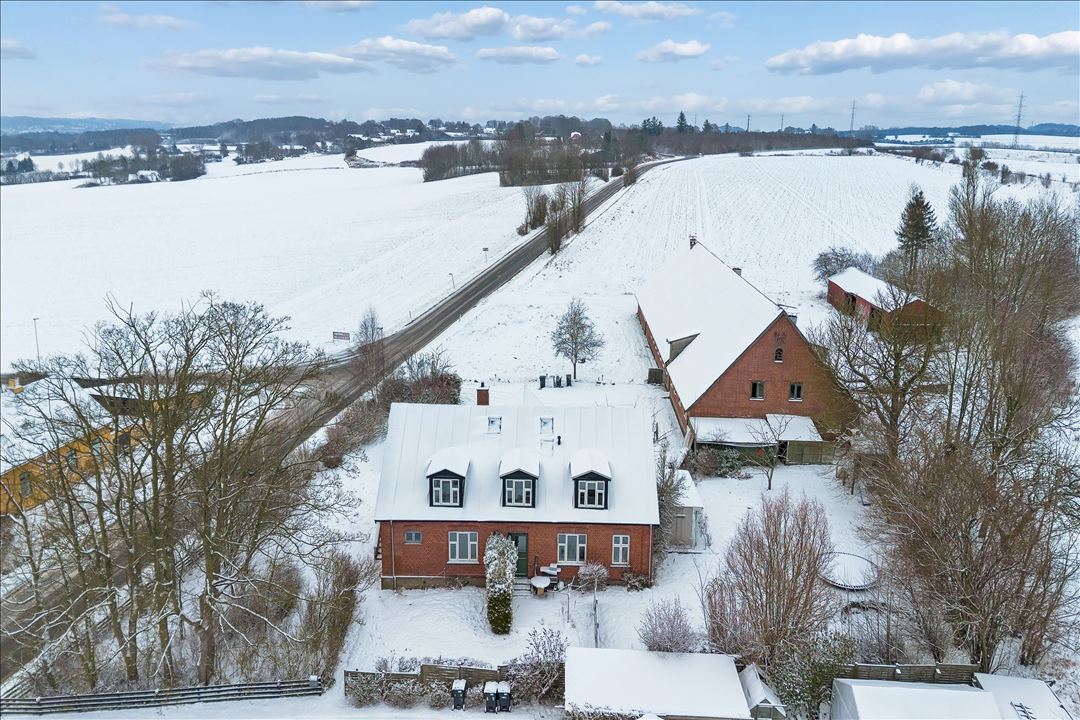 Her udbydes et bynært landsted med mange anvendelsesmuligheder. Ejendommen består bl.a. af et stort og delvist renoveret murermesterhus opført i røde tegl, pt. indrettet som to rummelige og veldisponerede lejligheder, en stor tiloversbleven tidligere landbrugsbygning på hele 671 m² samt et samlet grundareal på knap 5,4 ha. Heraf indgår en separat parcelhusgrund på 656 m² med mulighed for yderligere bebyggelse og/eller frasalg.