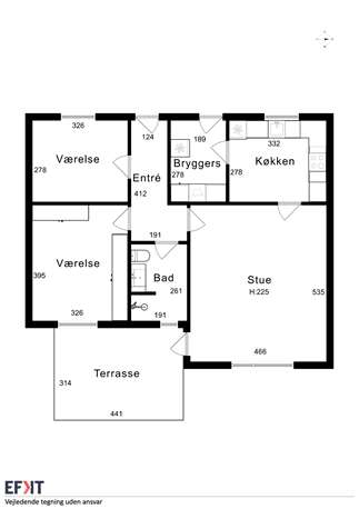 Varmekilde er elvarme med el-varmepaneler og luft-til-luft varmepumpe.