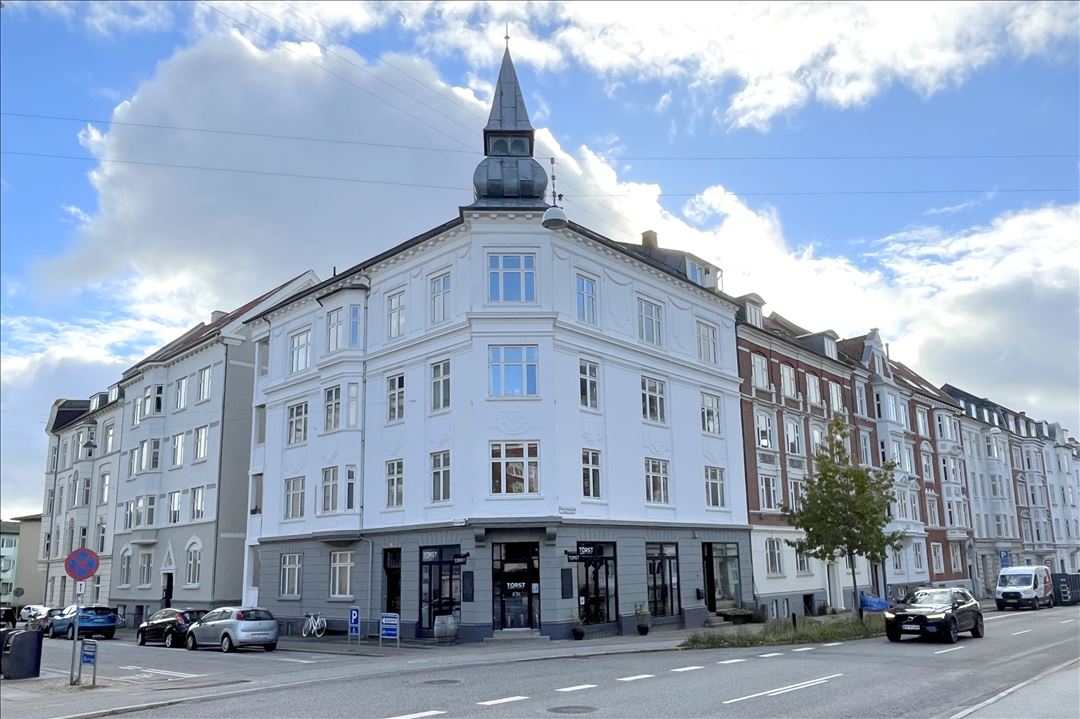 Ejendommen på hjørnet af Nyborggade og Hans Broges Gade er en meget smuk og centralt beliggende ejendom i et af de mest eftertragtede kvarterer i Århus C – kendt som ”Thors Hus” – opført i 1906 og løbende moderniseret (ejendom såvel som lejemål). Bygningen fremstår særdeles præsentabel med hvidpudset facade (2023), altaner, karnapper, arkitektoniske detaljer og det karakteristiske tårnspir.
