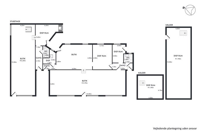 Værkstedet har brugsret til en større kælder, med nedgang fra gården og butikken har brugsret til en mindre kælder via en lem fra butikken. Disse arealer er ikke medtaget i det samlede areal.
