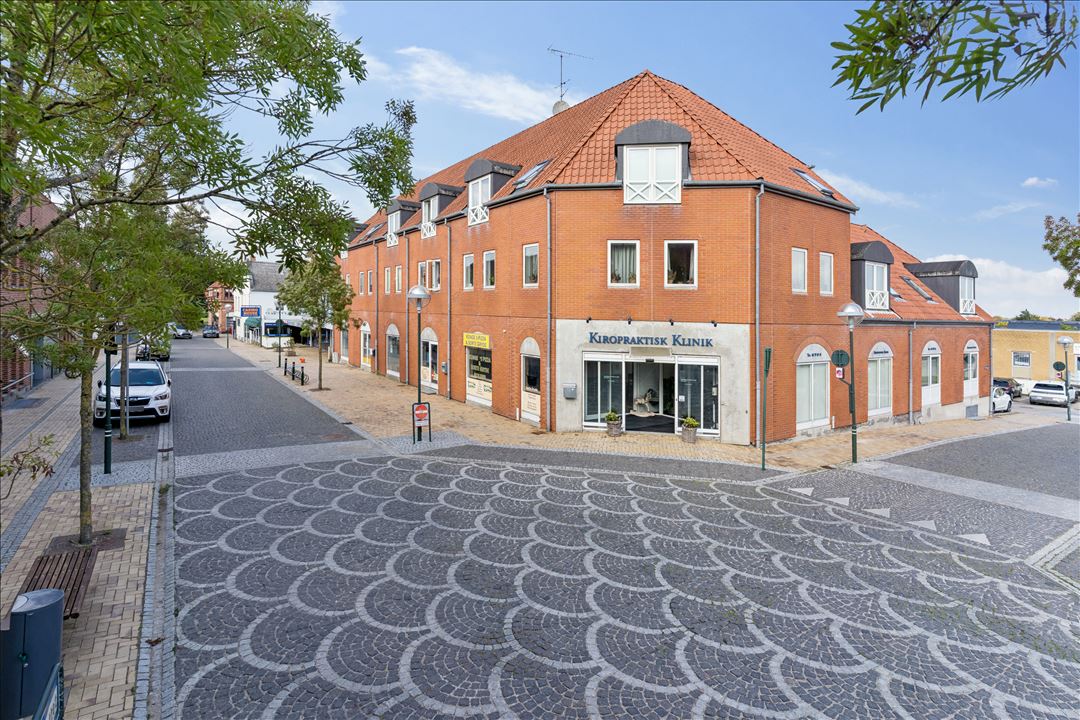 Investeringsejendom bestående af 2 erhvervsejerlejligheder på i alt 888 m² fordelt med tinglyst areal 522 m² i stueetagen og 366 m² i kælderen.Lejlighederne er beliggende i byejendom bygget i 1990 med en udvendig ståltrappeopgang på bagsiden og delvis to fulde etager, tagetage samt fuld kælder. Ydervægge og etagedæk er udført med betonelementer og skalmuret med røde blanke mursten samt gråpudset hjørne indgangsparti. Taget er med ca. 45 graders hældning forsynet med gavlkviste/ovenlysvinduer og beklædt med røde vingetegl. Vinduespartier og udvendige døre i stueetagen er med trærammer/karme og termoruder.