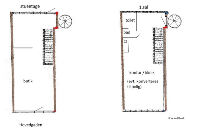 120 kvm. butik, klinik i 2 plan - evt. bolig på 1.sal - bedste placering på Hovedgaden – SÆLGES NUByggetilladelse foreligger til konvertering af 60 kvm. til bolig på 1.sal