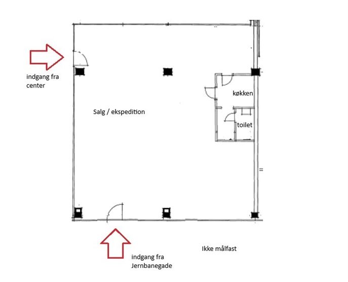 Butikken er indrettet med stort salgsareal, baglokale/køkken samt toilet.