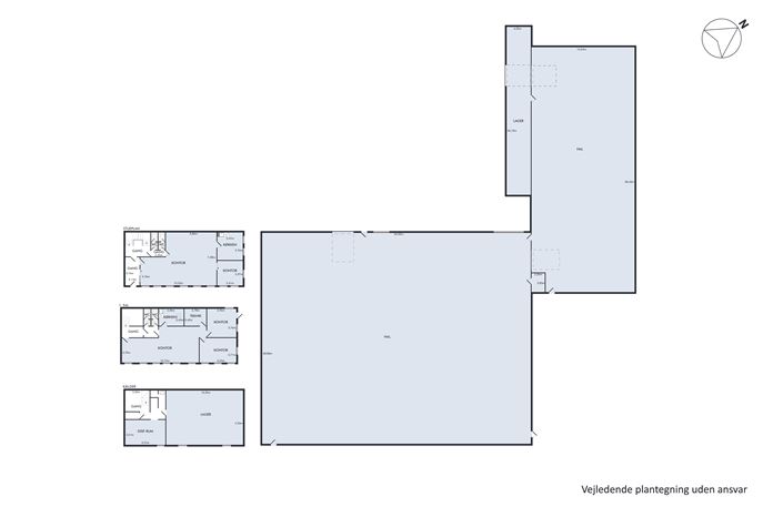 268 m² kontor i 2 plan – Ideelt til administration og mødefaciliteter. 134 m² nyistandsat kælder – Velegnet til arkiv, teknikrum eller lager. 655 m² højlager – Med egen portadgang og en loftshøjde på 6 meter.