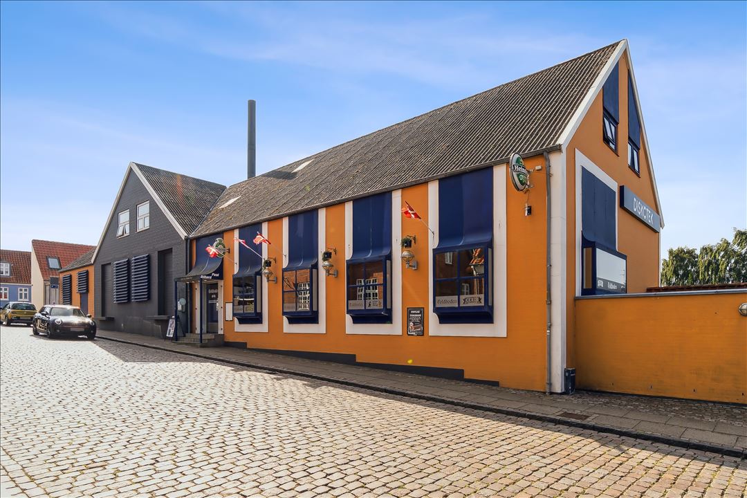 I mere ned 40 år har ejendommen på Toldbodvej 1 i Ebeltoft været synonymt med Diskotek Klods Hans – drevet af ejendommens nuværende ejer og familie i alle årene. Efter 40 år med fest og farver er det blevet tid til at give depechen videre, hvorfor vi med stolthed kan byde ejendom, med al inventar, historie og goodwill, til salg.Selve bygningen er oprindeligt opført i 1955 med løbende om- og tilbygninger. Ejendommen er opført i mursten, herunder pudset og holdt i hhv. gul og grå farvenuance. Taget er med høj hældning og af fibercement, mens vinduerne primært er enkeltfags eller sprossede.