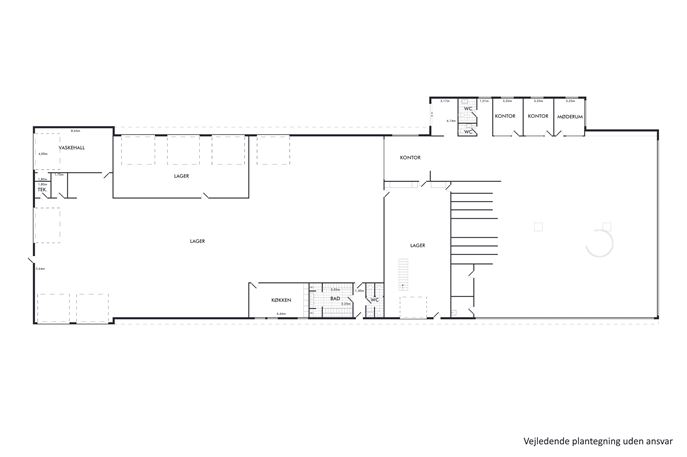Bygningen indeholder et rummeligt og lyst showroom med tilhørende salgskontorer, ideelt til bilhus, detail eller andre brancher, hvor præsentation og kundekontakt er i fokus. Hertil kommer et velindrettet værksted med effektiv indretning samt en praktisk vaskehal, der fuldender de driftsmæssige muligheder.