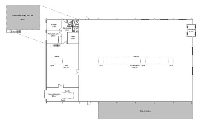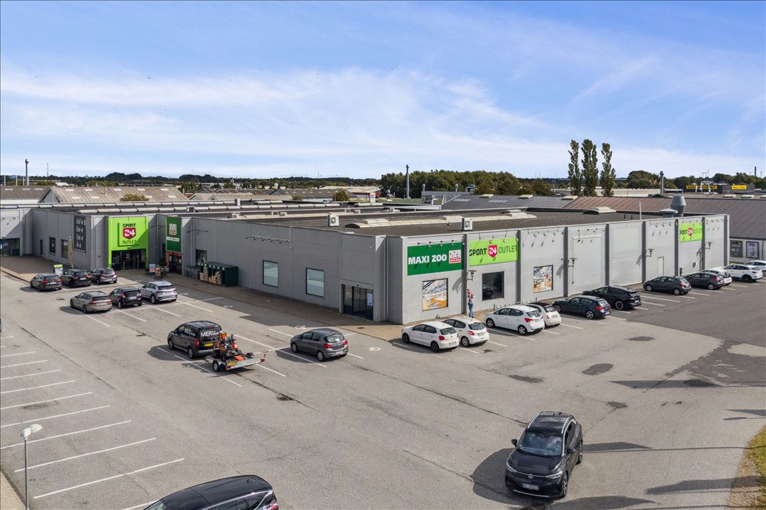 Ejendommen er beliggende med facade direkte mod den trafikerede Randersvej. Ejendommen er beliggende som den første box-butik, når de handlende tilgår handelsområdet fra Randersvej. Med lejemålets aflange facade, er det nok den bedst beliggende box-butik, for at opnå optimal eksponeringsmuligheder. Box-butikken er beliggende i samme handelsområde som Netto, Maxi Zoo, Skousen mv.Ejendommen er indrettet med et stort salgsareal på ca. 1.000 m² med højt til loftet, hvilket giver mange indretningsmuligheder. Ejendommen er udstyret med loftsbelysning, ventilation- og klimaanlæg for at sikre et optimalt indeklima. Lager og personalefacilitere udgør samlet ca. 300 m², hvor der til lageret er port indgang i niveau.