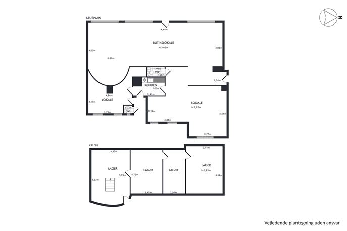 • 206 m² butik og systue + 94 m² kælder med opbevaring af kjoler