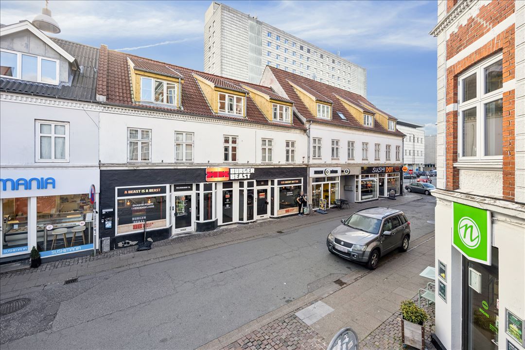 Ejendommen er beliggende midt i Aalborgs pulserende byliv med et stærkt flow af kunder.