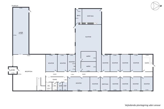 Med et samlet kontorareal på ca. 1.174 m² fordelt på to plan tilbyder ejendommen en veldisponeret og fleksibel indretning, hvor både åbne kontormiljøer og cellekontorer kan etableres efter behov. Den eksisterende planløsning er opført med lette vægge, hvilket giver kommende ejer gode muligheder for at tilpasse indretningen til virksomhedens organisation, arbejdsgange og vækstplaner.