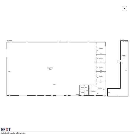 Ejendommen er i alt 1.774 m², forsynet med 175 m² kontor/administrationsafdeling, og 1.599 m² højloftet lager/produktion.