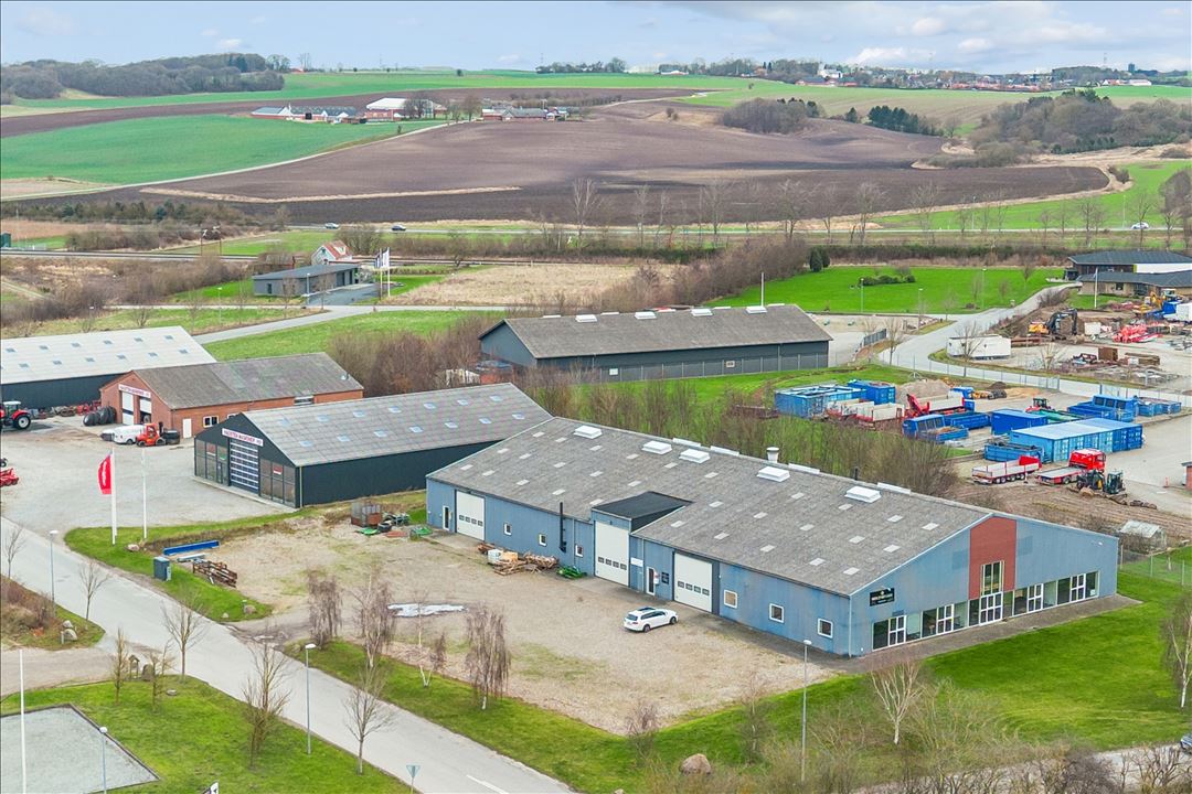 Grunden er 5.000 m² velbeliggende i et attraktivt erhvervsområde i Hadsten.