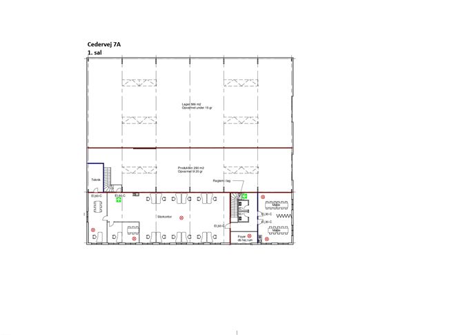 Ejendommen på Cedervej 4 er opført i 2023 og rummer et samlet etageareal på 715 m², hvoraf ca. 510 m² udgør moderne kontorfaciliteter i to plan. Ejendommen fremstår næsten ubrugt og giver mulighed for indflytning i helt tidssvarende rammer.