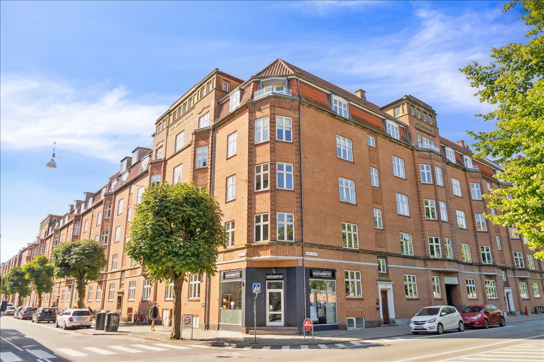På det livlige Frederiksbjerg, midt på Ingerslevs Boulevard, ligger denne klassiske hjørneejendom fra 1928 med en synlig og eksponeret placering. Området er præget af caféer, butikker og de populære torvedage, der tiltrækker mange besøgende.