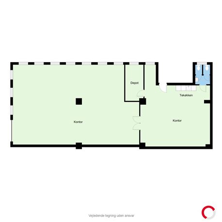 Lejemålet består i dag af et storrum, hvor der i den bagerste del er indrettet tekøkken, toiletkerne og depot. Lejemålet har i mange år været anvendt til vinhandel og er oplagt til en tilsvarende virksomhed, der har behov for både backoffice og "frontoffice" faciliteter. Hele lejemålet har store vinduespartier, hvilket giver et skønt lysindfald, og der er desuden en stor elektrisk port.