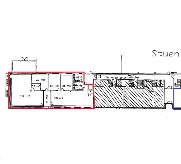 Udover de 314 m² ”egne lokaler” kommer de fælles gangarealer, toiletter på gangen samt det fælles indgangsparti.